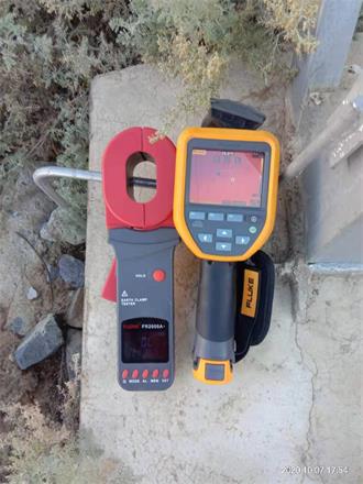 首先做接地检测,用KDCR2000钳型接电阻测试仪进行接地排检测,测出4个接地排的接地值0.21Ω,和0.20Ω检测完接地电阻,开始做110KV的架空线红外检测。