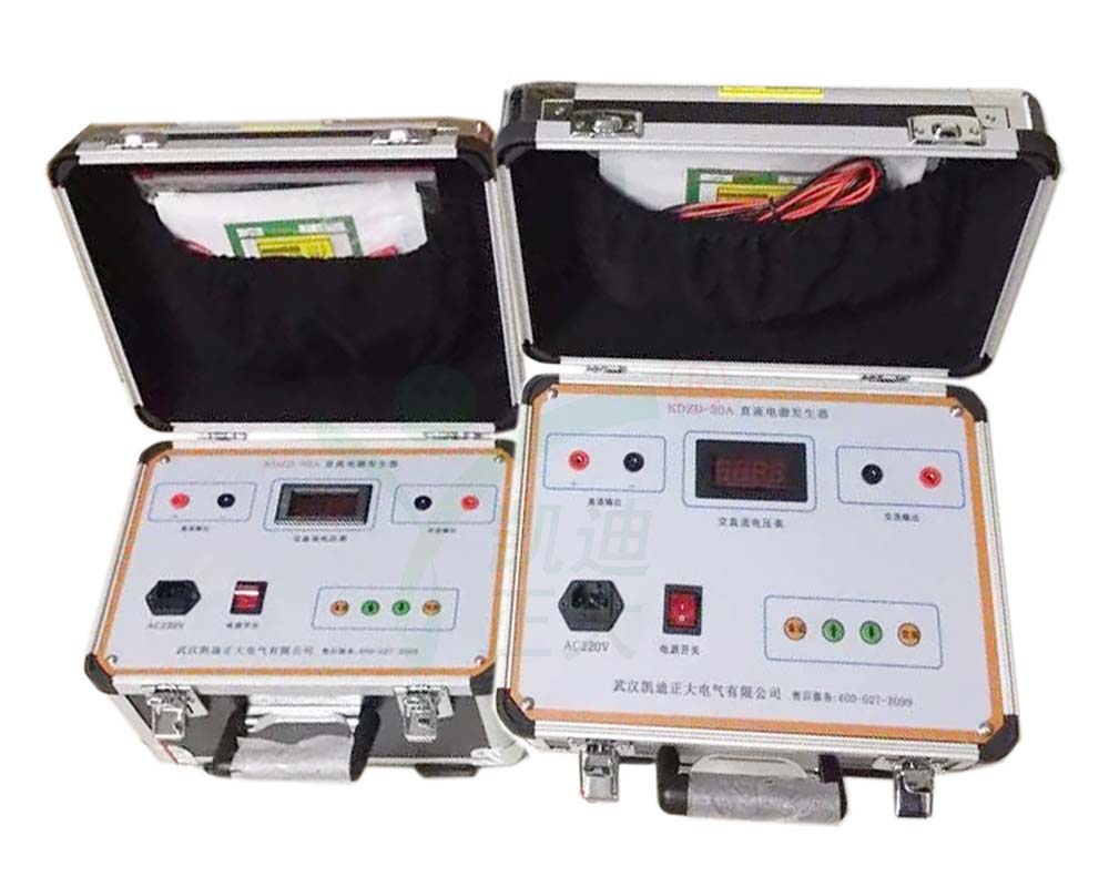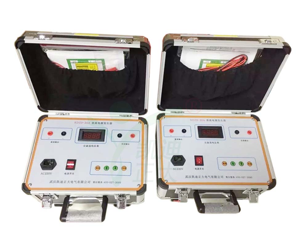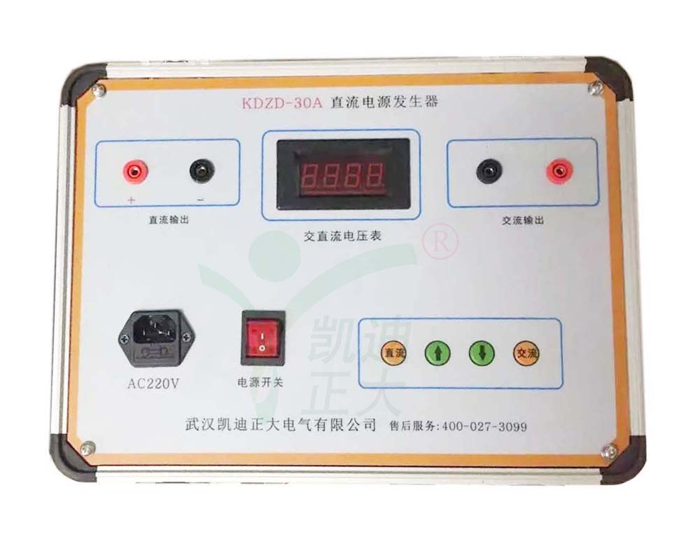 KDZD-30A 交直流开关电源发生器亦称高压开关检测操作电源,是为对高压断路器及其操作机构进行检测维修而设计的专用电源,具有电压可调、操作简单、体积小、携带方便等优点,是高压开关检修的工具。