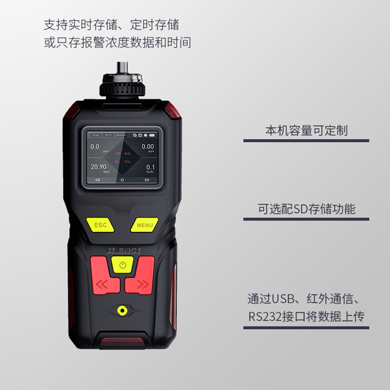 检测气体:复合气体 ( 一氧化碳 CO、硫化氢 H2S、氧气 O2、可燃气体 Ex 等) ,选配:可检测 4 种气体浓度和温湿度