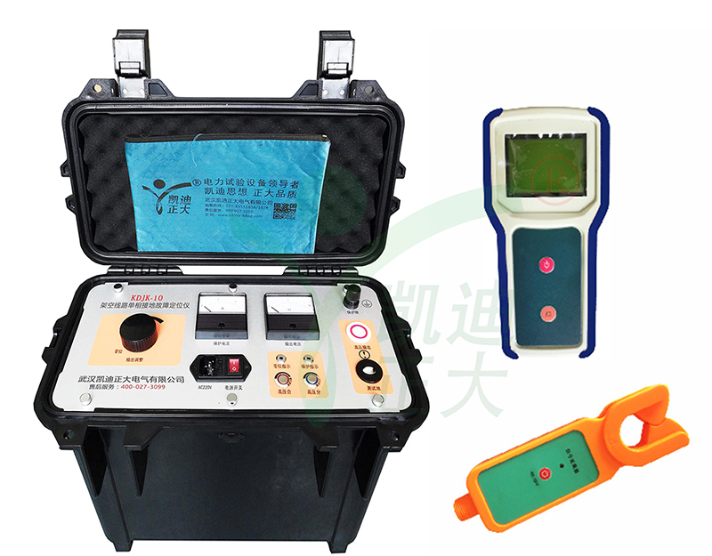 KDJK-10 架空线路单相接地故障定位仪是一套便携设备,可进行多条线路的故障定位。整套设备由发射机、传感器、接收机及附件组成。在故障线路停运后,由发射机向线路施加超低频高压信号使故障重现,在线路沿途用绝缘杆将传感器挂在线路上检测信号,并通过无线方式向地面上的接收机传输数据,接收机显示测量结果。在故障点前,电流持续存在,故障点后,电流消失。可先进行粗略分段,再精确定点,从而快速确定故障位置。