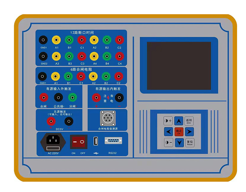 ●  本装置有12路触头输出,可同时模拟12个高压断路器触头。